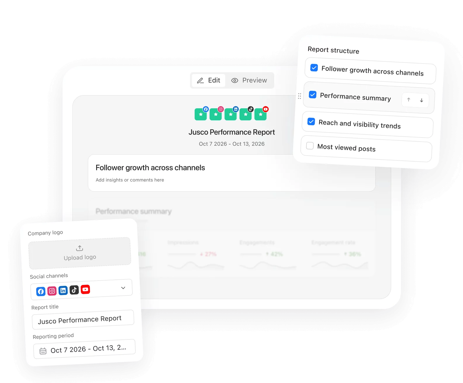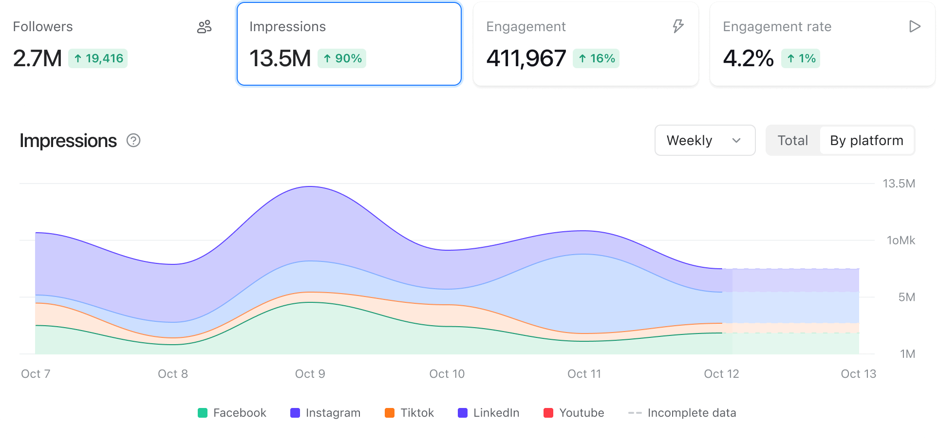 Planable Analytics shows platform statistics over your preferred periods of time.