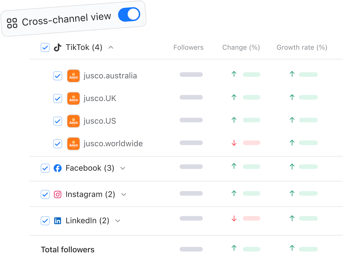LinkedIn: followers, number of posts, impressions, engagement, page views, followers location map, top countries, top cities, job functions, seniority levels